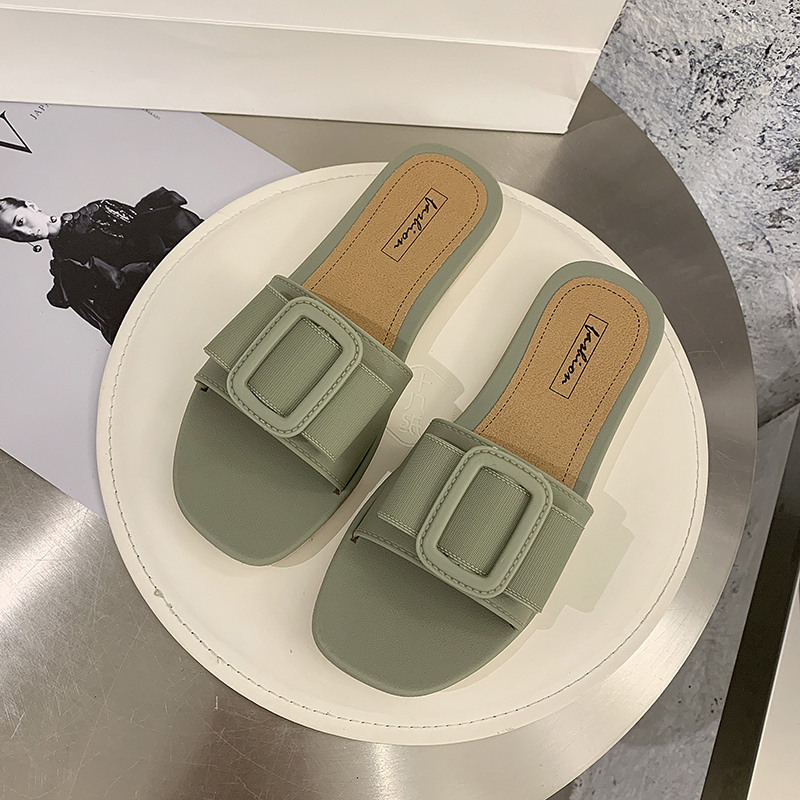 时尚方扣小清新风简约舒适柔软一字凉拖鞋【PVC/绿色】