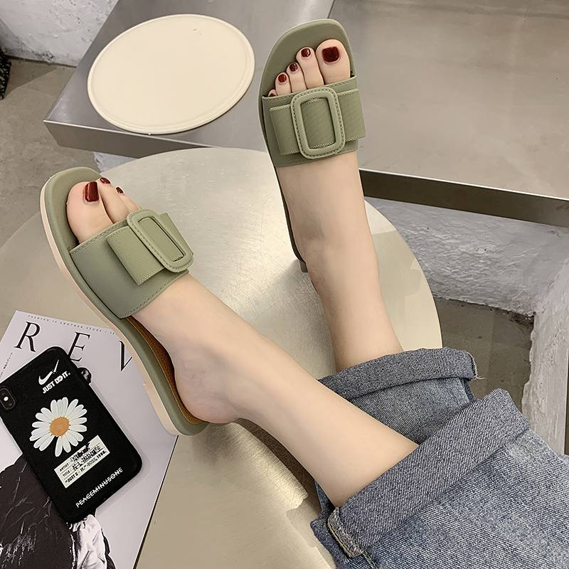 时尚方扣小清新风简约舒适柔软一字凉拖鞋【PVC/绿色】