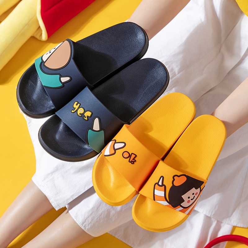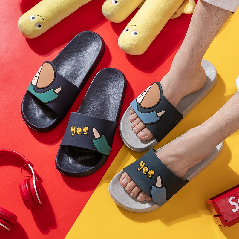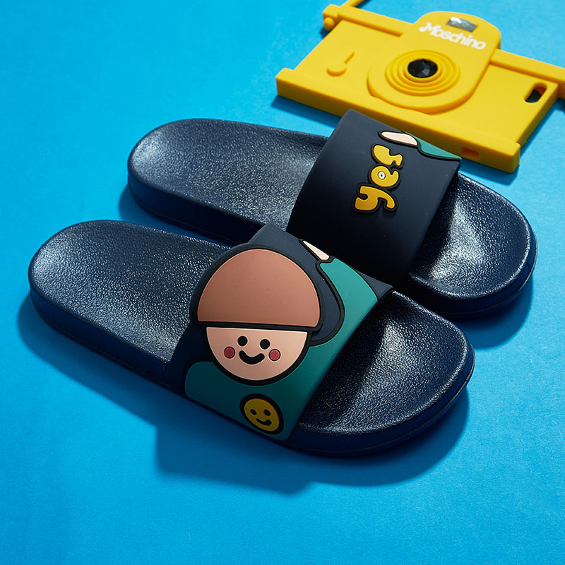 时尚卡通可爱趣味招手蘑菇头厚底舒适情侣凉拖鞋【pvc/深蓝】