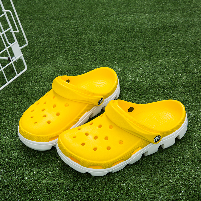 夏季潮流时尚马克龙色系简约舒适男式两穿洞洞鞋【PVC/艳黄】