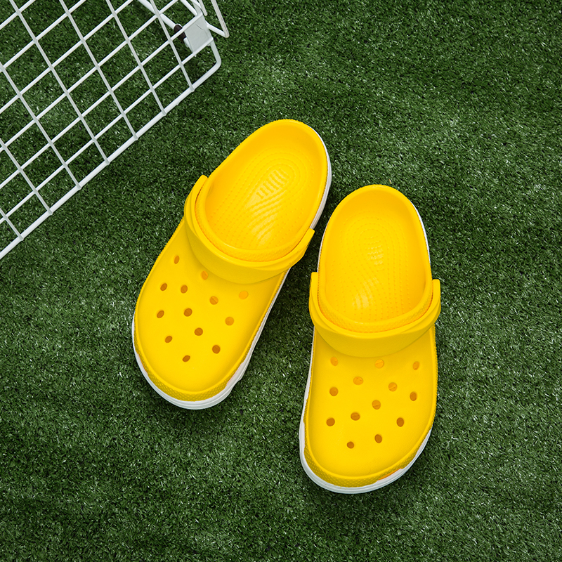 夏季潮流时尚马克龙色系简约舒适男式两穿洞洞鞋【PVC/艳黄】
