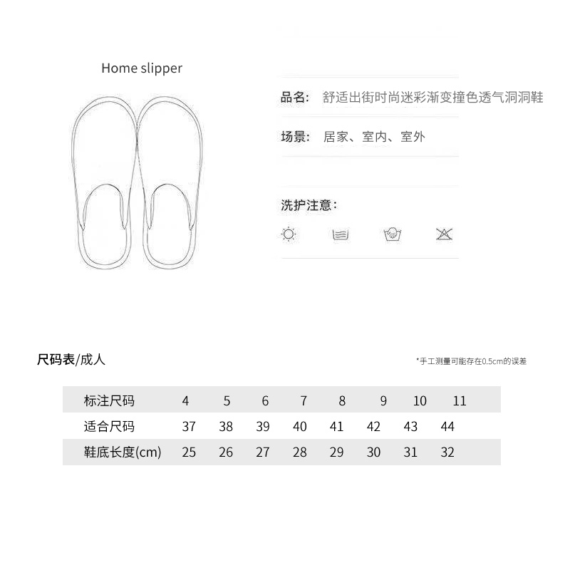 舒适出街时尚迷彩渐变撞色透气洞洞鞋【EVA/新海蓝/浅灰】