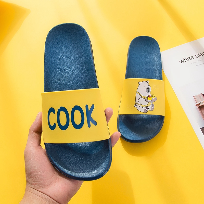可爱卡通趣味送餐熊撞色亲子款凉拖鞋【橡塑/海蓝/黄色】