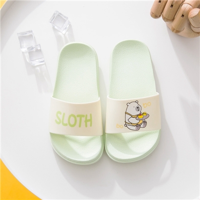可爱卡通趣味送餐熊撞色亲子款凉拖鞋【橡塑/浅绿/米色【童鞋】】