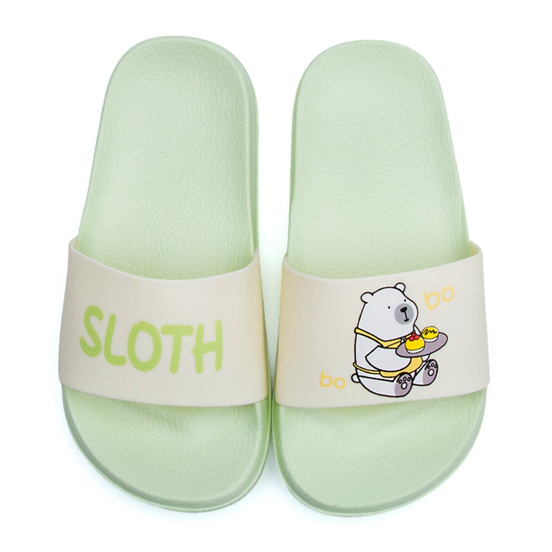 可爱卡通趣味送餐熊撞色亲子款凉拖鞋【橡塑/浅绿/米色【童鞋】】