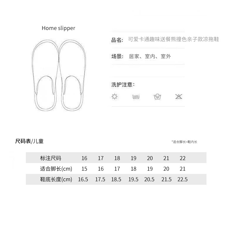 可爱卡通趣味送餐熊撞色亲子款凉拖鞋【橡塑/白色/湖蓝【童鞋】】