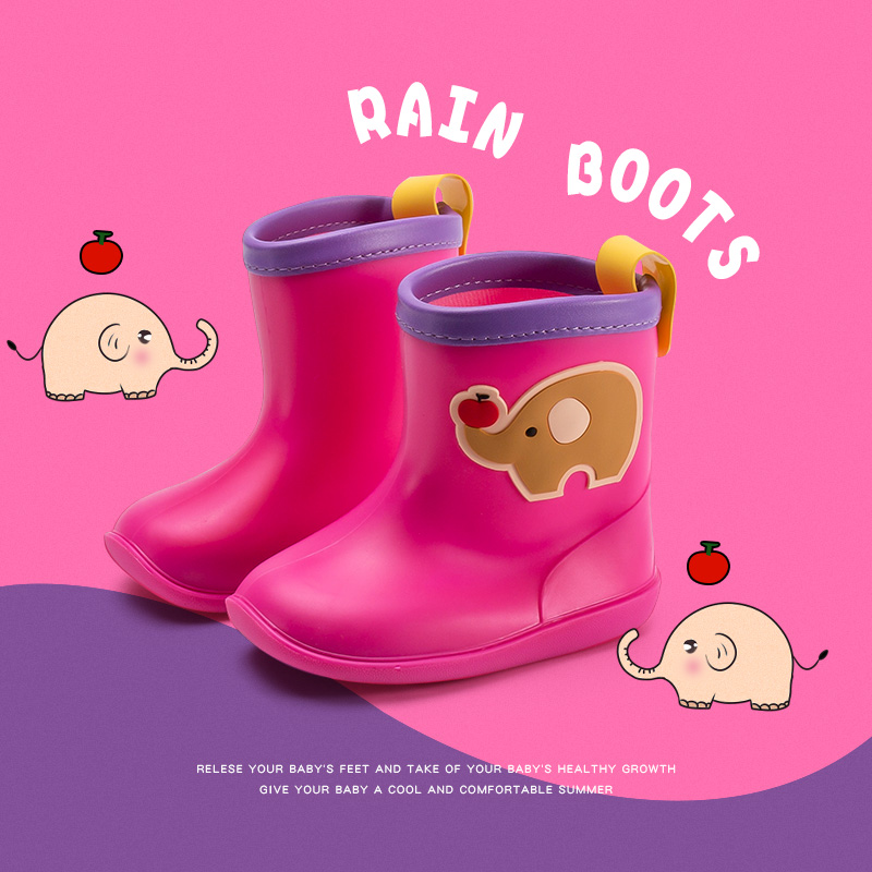 糖果色可爱卡通儿童雨鞋【PVC/玫红】