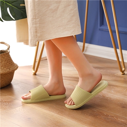 纯色华夫格浴室居家PVC凉拖鞋两双装【PVC/浅绿+浅灰】