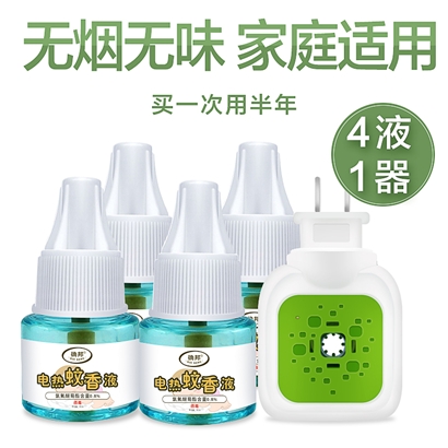 电热蚊香液无味婴儿孕妇蚊子家用驱蚊液*4+插电式电蚊器*1
