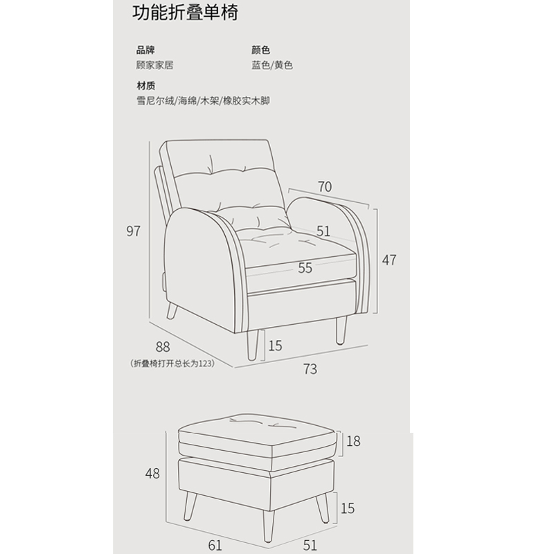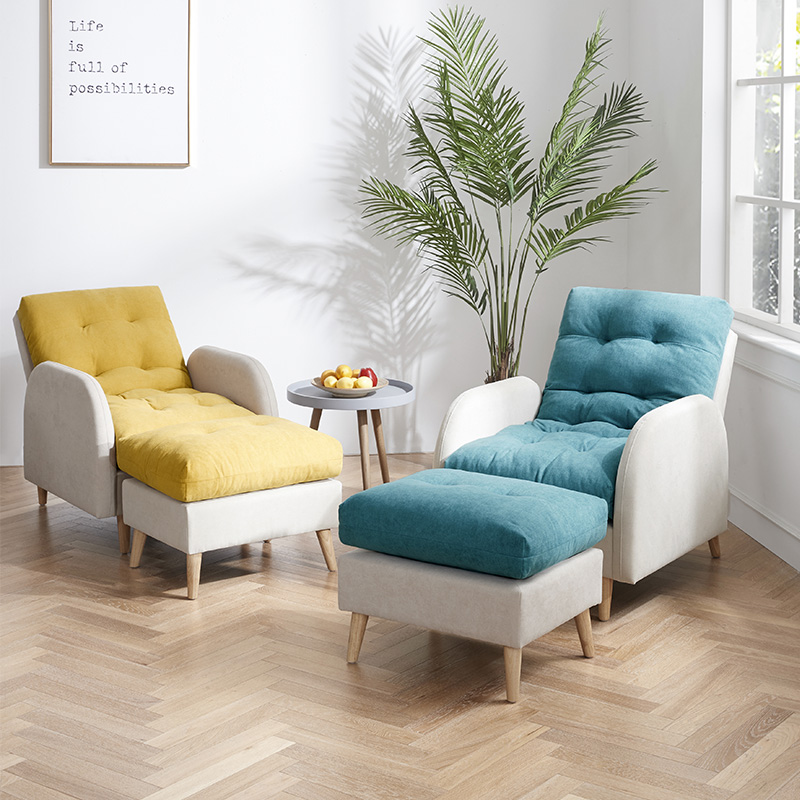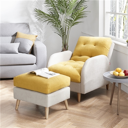 拼色懒人躺椅 含脚蹬XJ【海绵/木架/黄色】