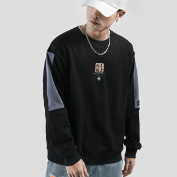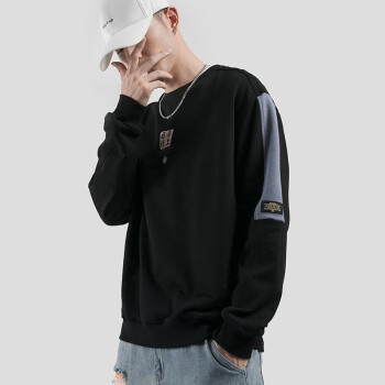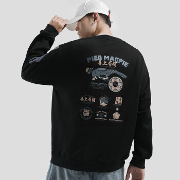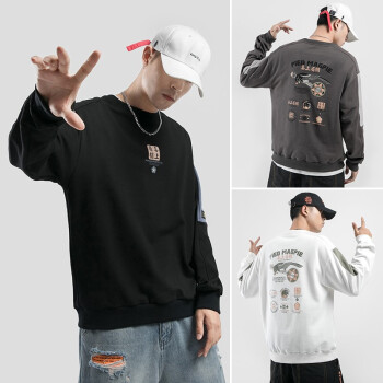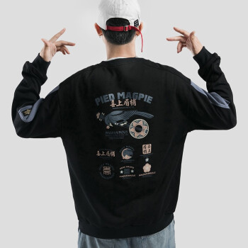 卫衣>>白灰楼 卫衣男秋装男士国潮cec宽松套头衫喜上眉梢印花长袖t恤男学生圆领情侣上衣外套 F8372黑色 L