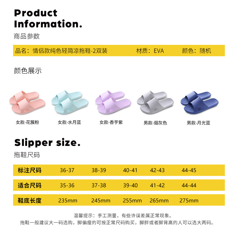 【超值单品】两双装 情侣云朵轻质休闲凉拖鞋【EVA/随机色】