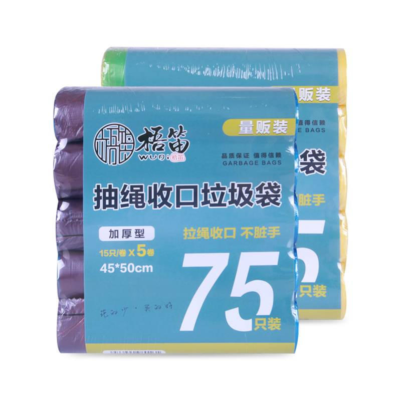 【超值单品】【150只 梧笛抽绳式垃圾袋】加厚超韧 大容量承重强【PE/【颜色随机发】2包共150个】 |
