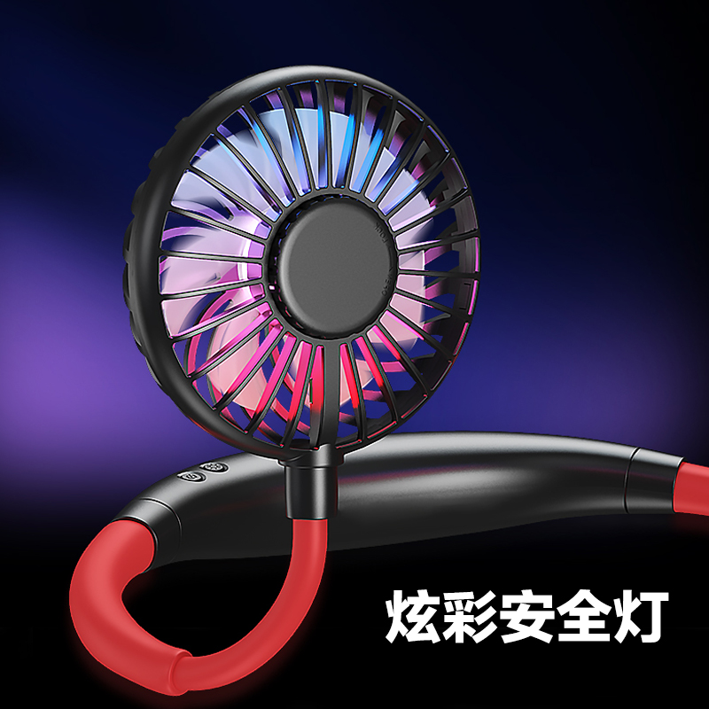 【超值单品】【带彩灯+香薰】第三代旗舰款7叶片挂脖风扇USB充电型【塑料+硅胶/黑红色】