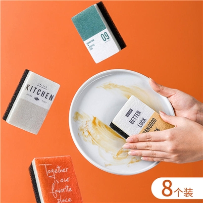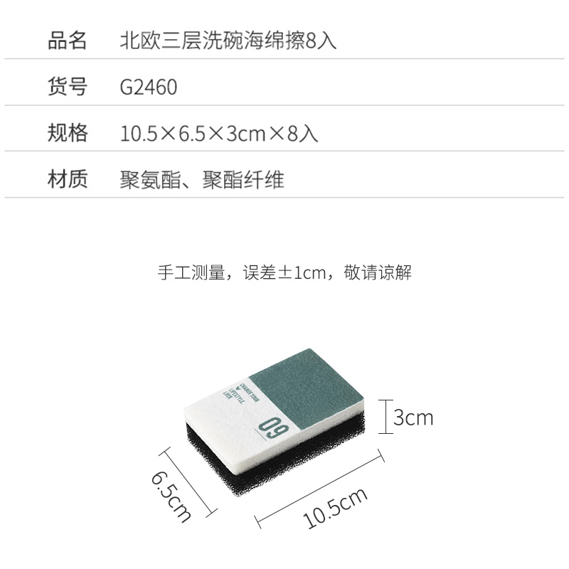 北欧三层洗碗海绵擦8入【聚酯纤维 聚氨酯/图片色】