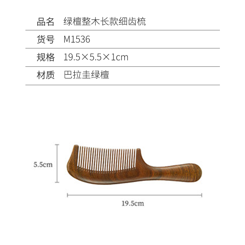 绿檀整木长款细齿梳【巴拉圭绿檀/图片色】