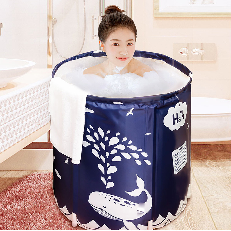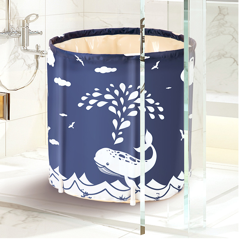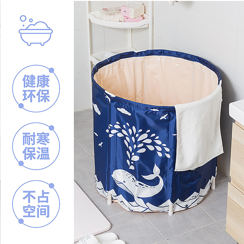 冬季家用保温折叠加厚大号浴盆泡澡桶【PVC/深蓝色】
