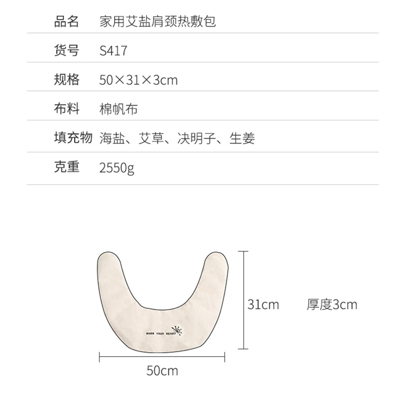家用艾盐肩椎热敷包【布料:100%棉纤维 填充物:海盐 艾草 决明子 生姜/图片色】