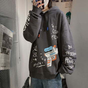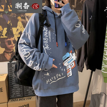 潮备 街头潮牌宽松嘻哈卫衣男士连帽衫青少年韩版秋季新款情侣原宿百搭外套 牛仔蓝 M