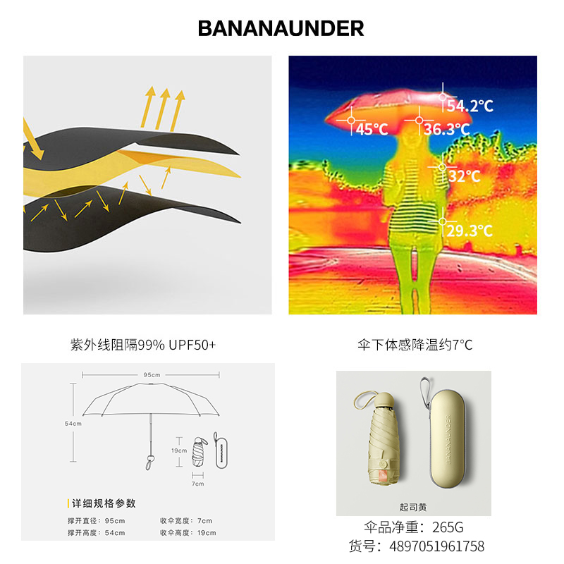 便携折叠遮阳伞【伞布: 聚酯纤维伞杆材质: 铝合金/起司黄】