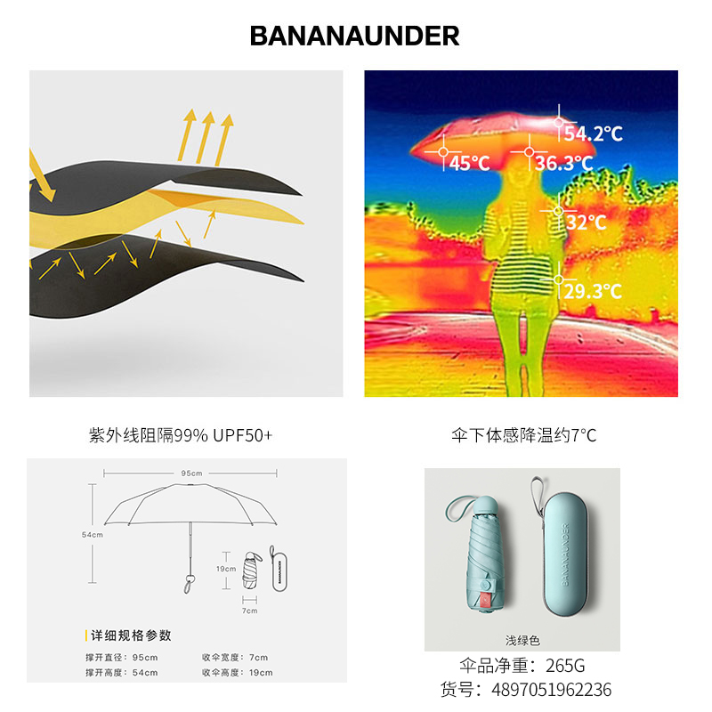 便携折叠遮阳伞【伞布: 聚酯纤维伞杆材质: 铝合金/浅绿色】