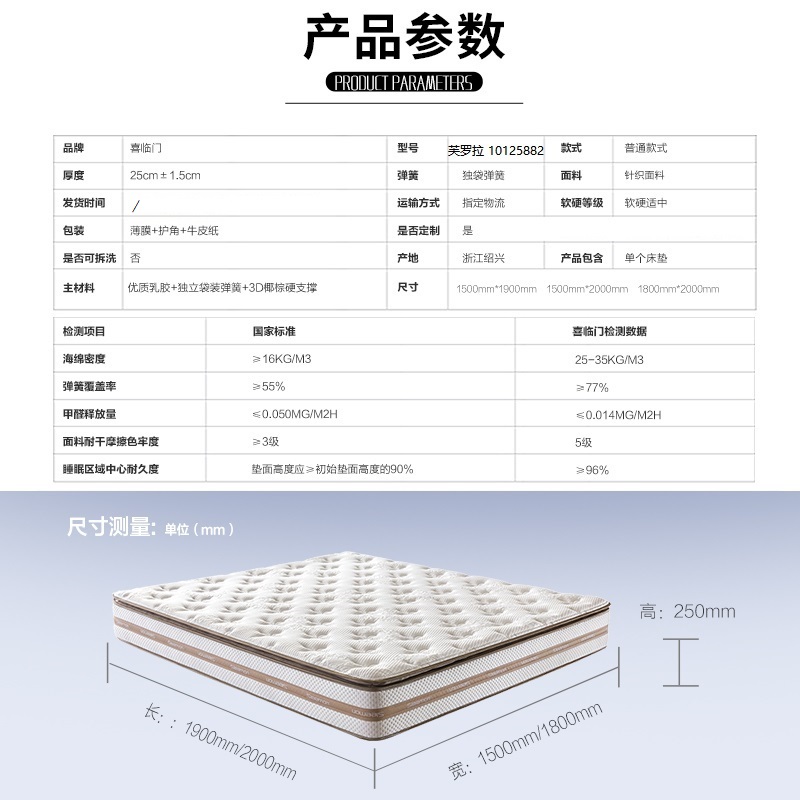 正反两用乳胶椰棕席梦思床垫(1.5米床)【独立弹簧+乳胶+椰棕/白色】
