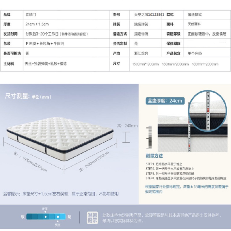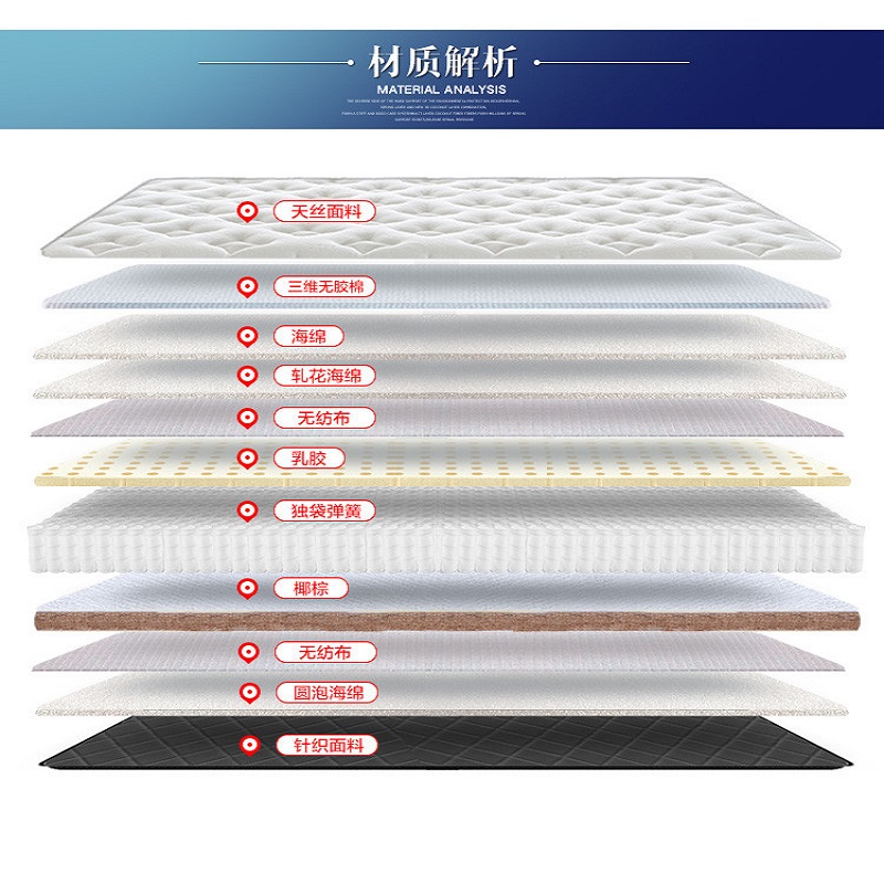 天丝面料护脊椰棕席梦思床垫(适用1.8米床)【天丝面料+乳胶/白色】