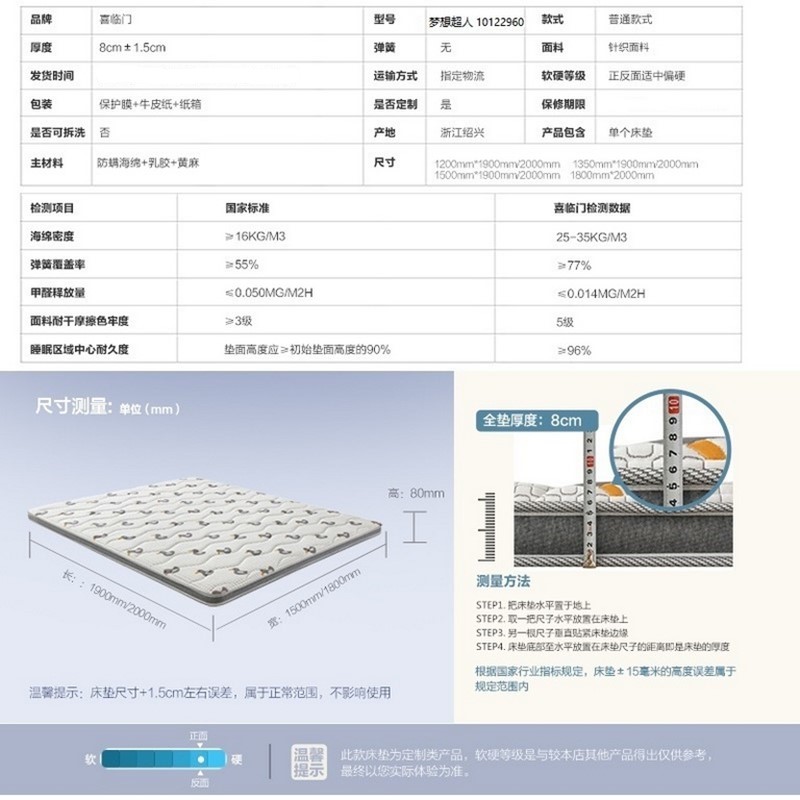 黄麻乳胶护脊儿童床垫(床垫一件)(适用1.8米床)【针织面料/白色】【针织面料/白色】 |