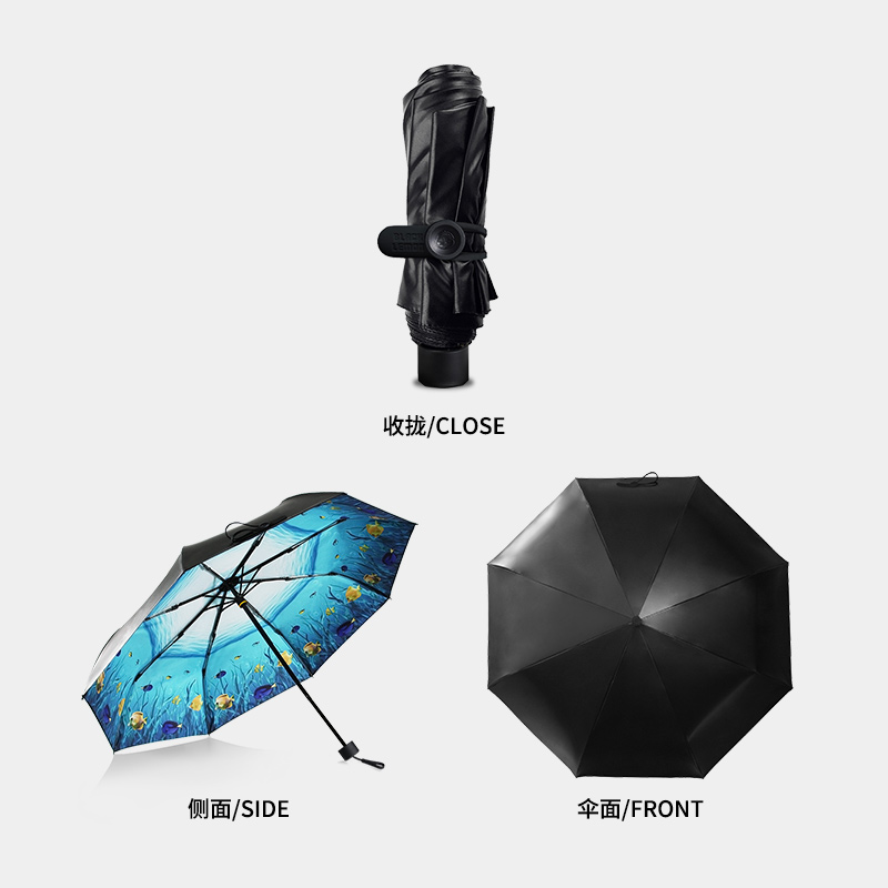 双层伞布防紫外线太阳伞【碰击布+黑胶涂层/热带鱼】