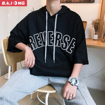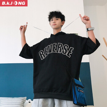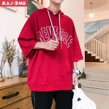 卫衣>>巴克龙新品夏季短袖卫衣男连帽港风潮流时尚休闲宽松百搭韩版青少年短袖t恤潮牌国潮原创设计小清新 红色 XL