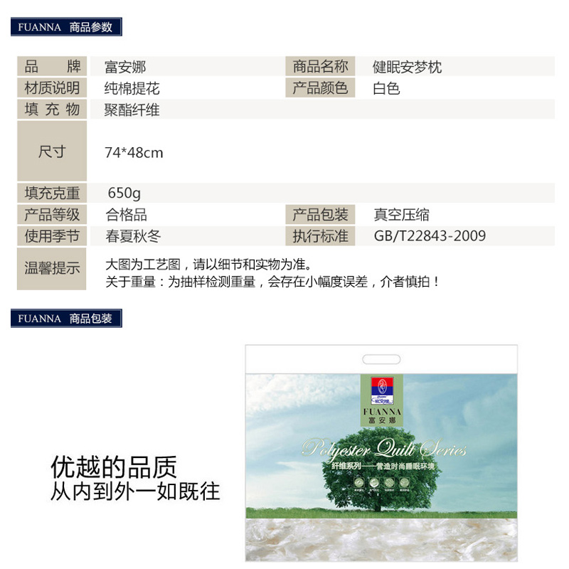 健眠安梦枕(枕芯两只装)【面料:纯棉;填充物:聚酯纤维/白】