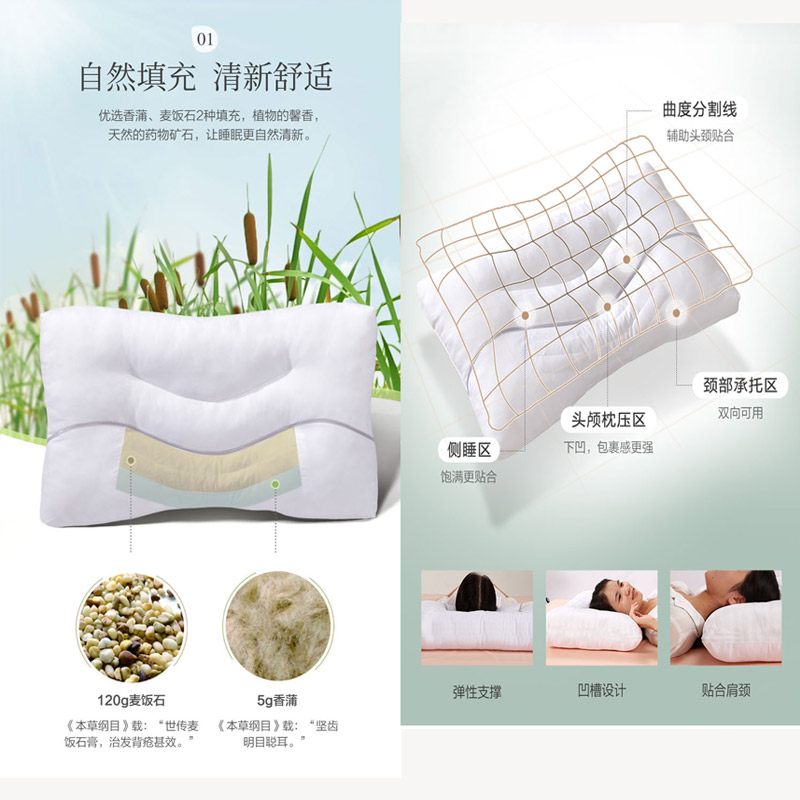 香蒲麦饭石草本对枕 枕芯一对【面料:全涤磨毛;填充:香蒲+麦饭石+纤维/白】