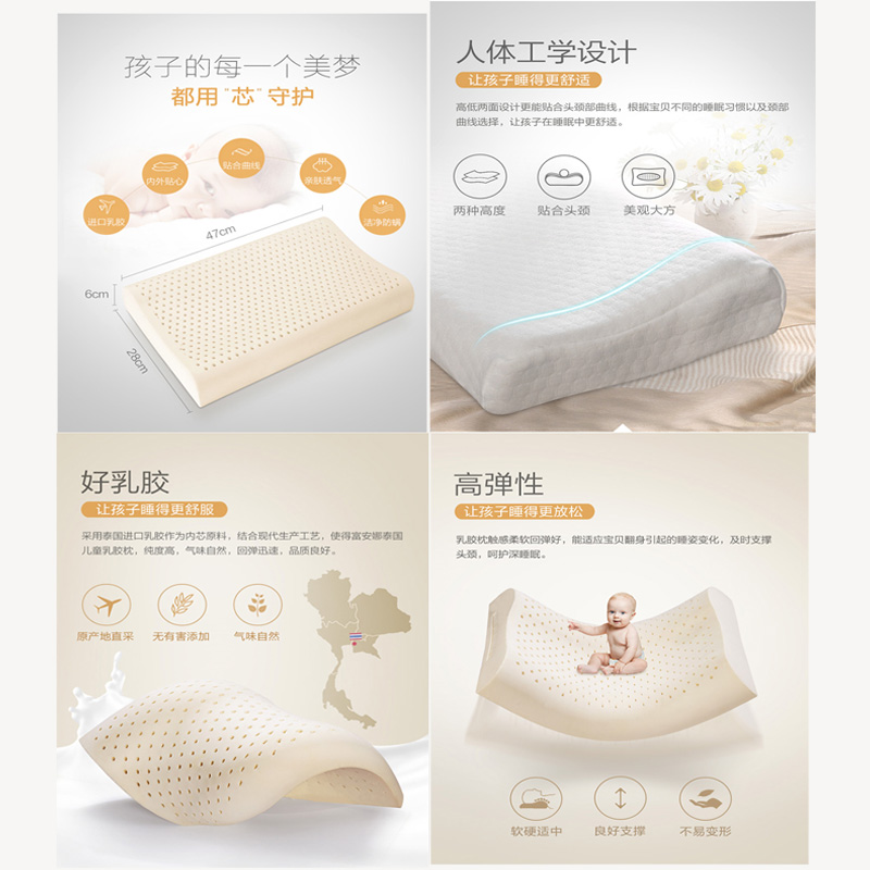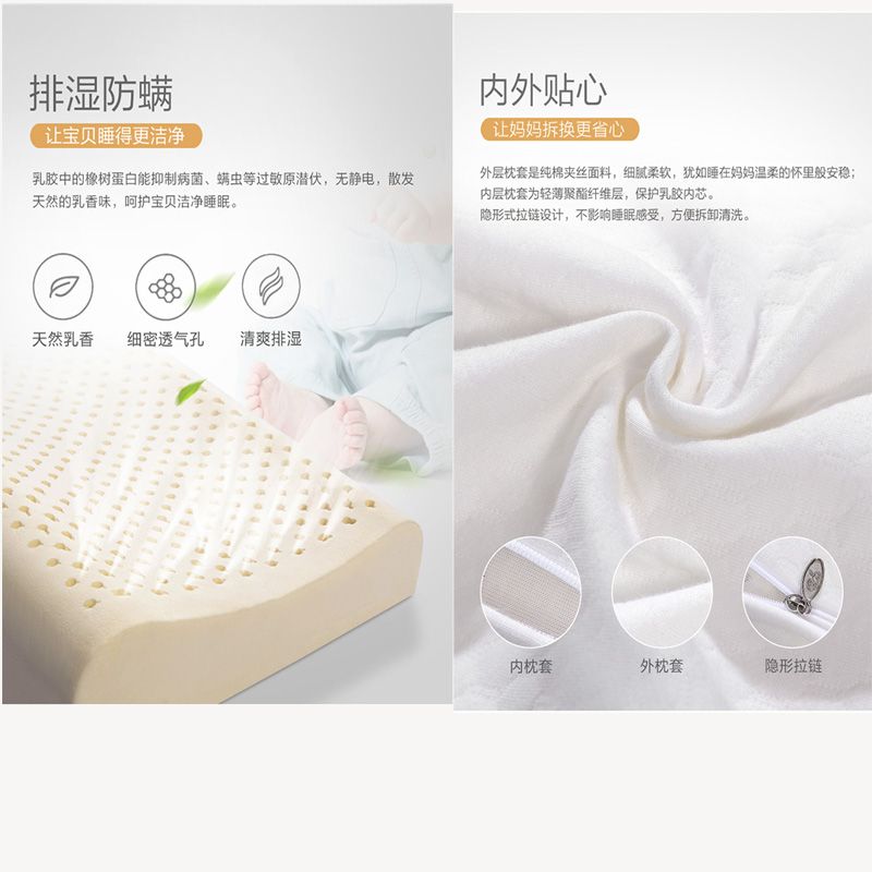 泰国进口瑞安儿童乳胶枕(单只装)【面料:纯棉夹丝布;填充:乳胶/白】