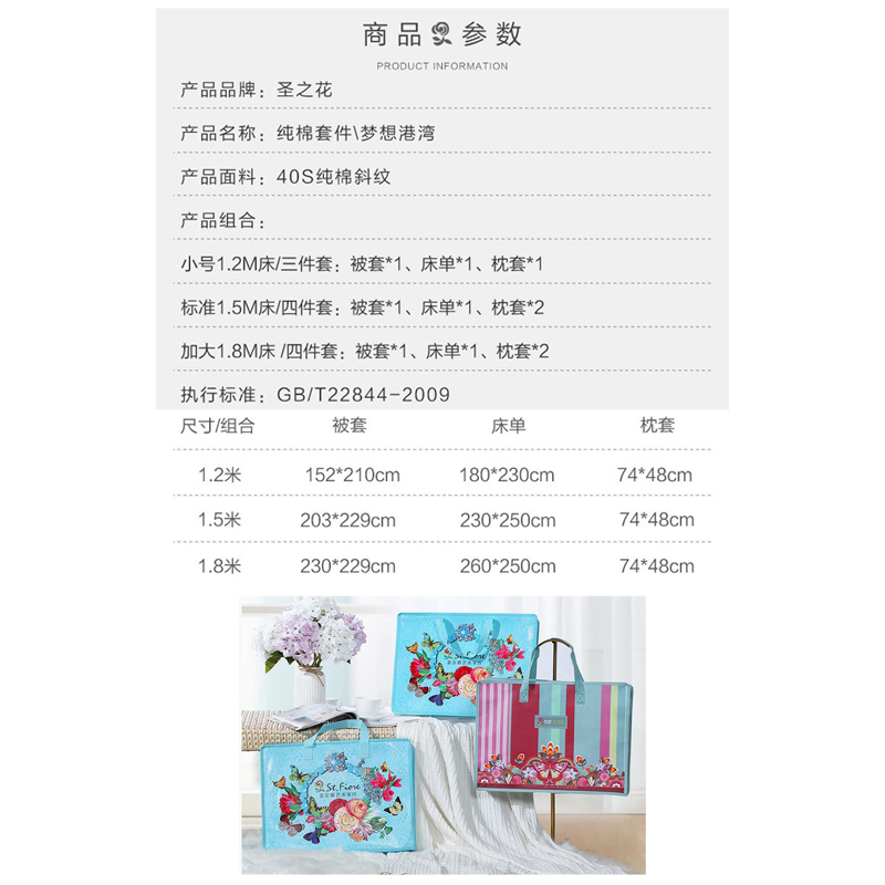 梦想港湾 床单四件套(被套1件床单1件枕套2件)(适合1.8米床)【纯棉/灰】