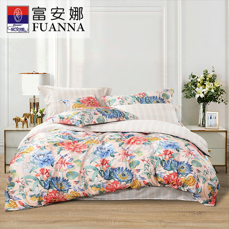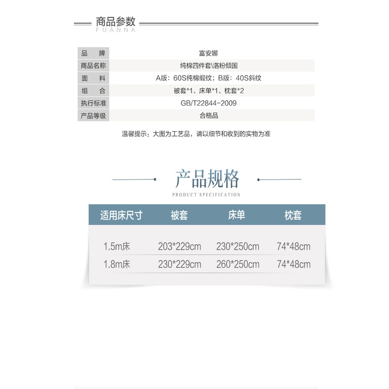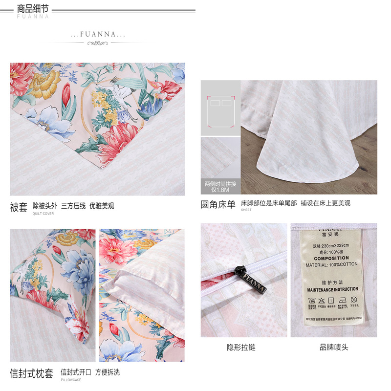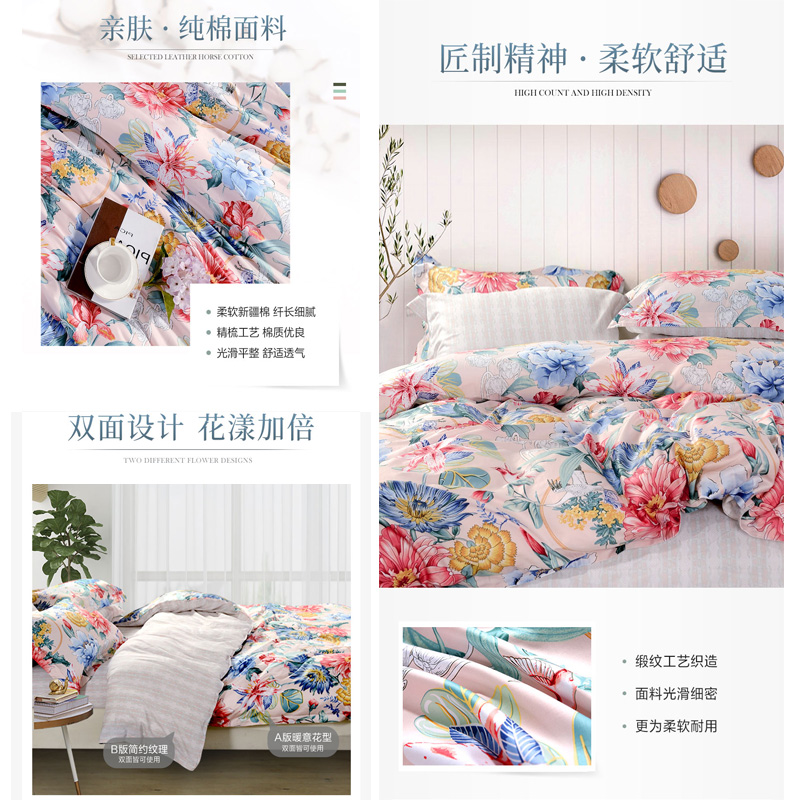 洛粉倾国 床单四件套(被套1件床单1件枕套2件)(适合1.5米床)【纯棉/粉色】