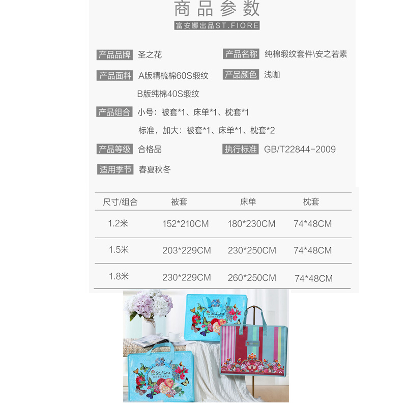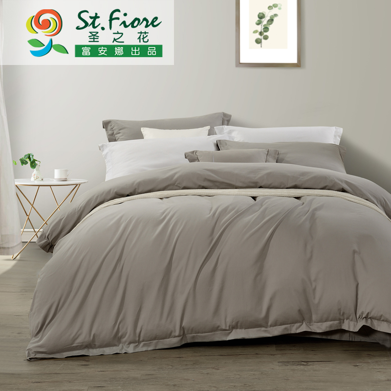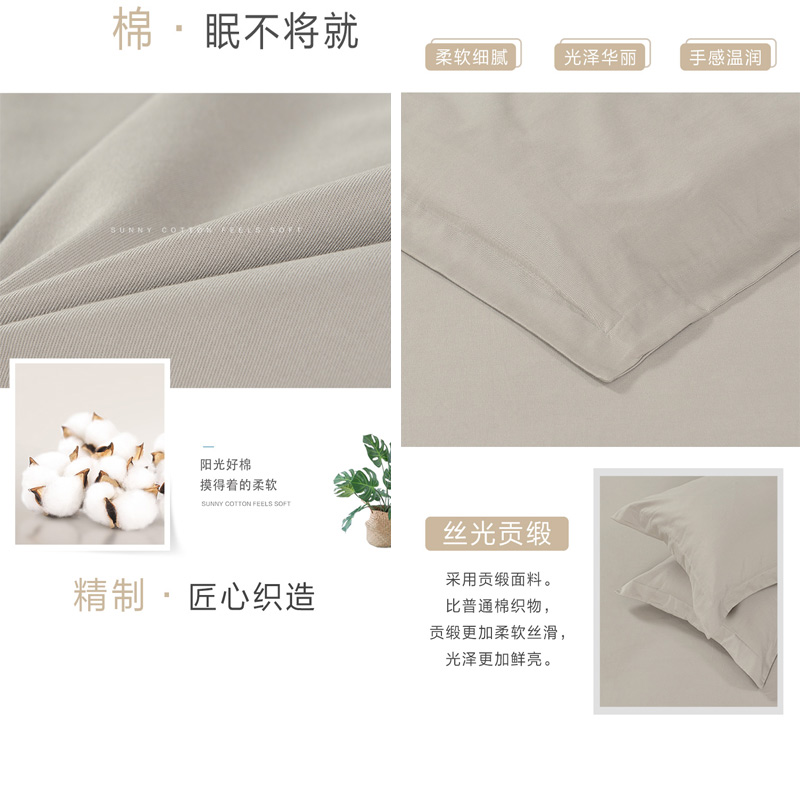 安之若素 床单四件套(被套1件床单1件枕套2件)(适合1.5米床)【纯棉缎纹/浅咖】