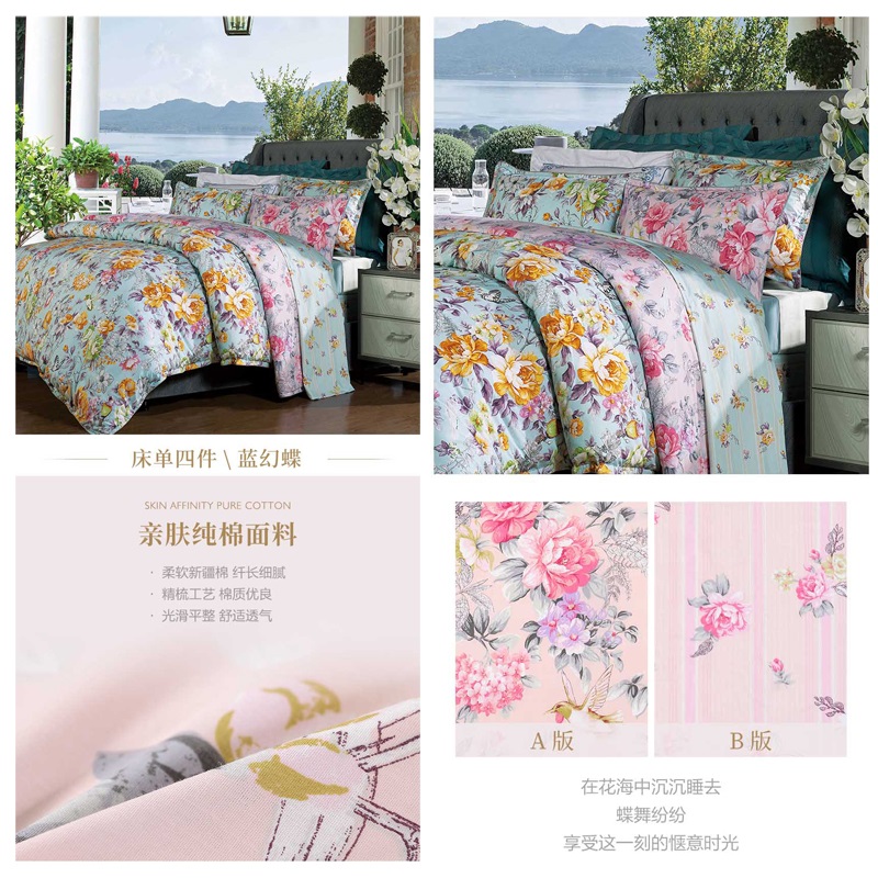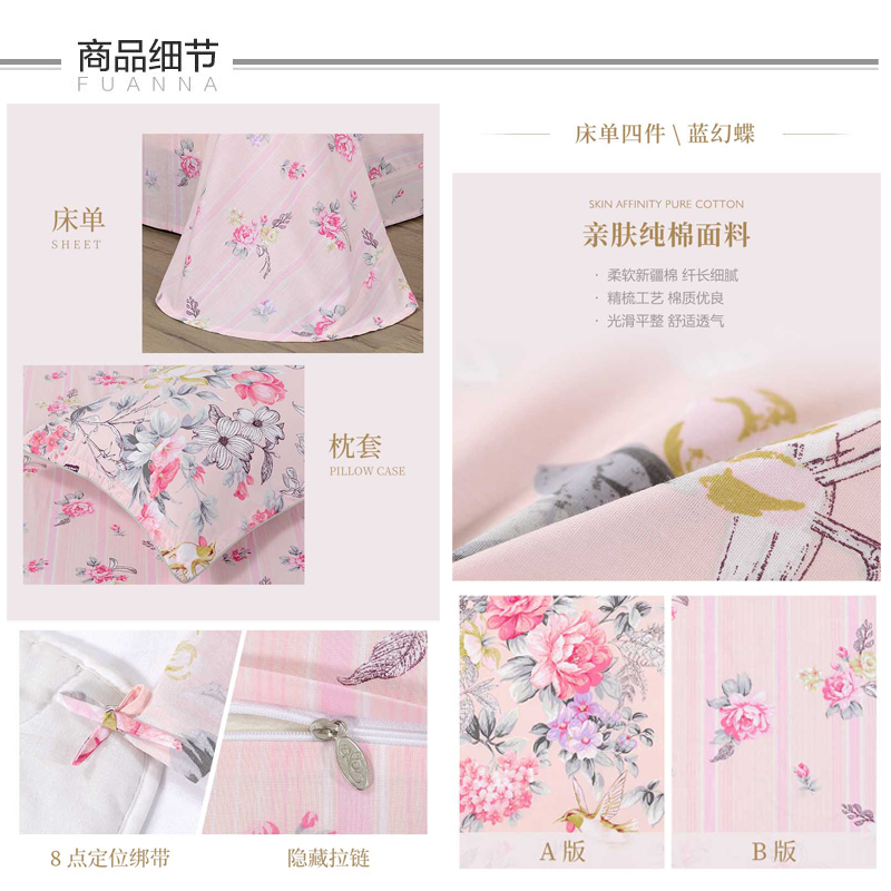 蓝幻蝶 床单四件套(被套1件床单1件枕套2件)(适合1.8米床)【纯棉/粉】