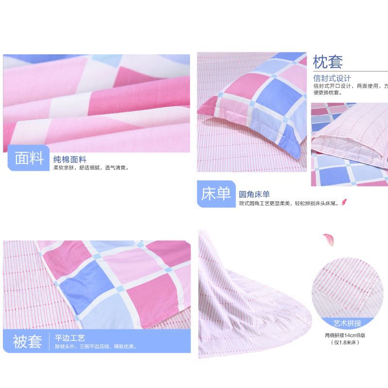 青春本色床单四件套(被套1件床单1件枕套2件)(适合1.8米床)【纯棉/粉】