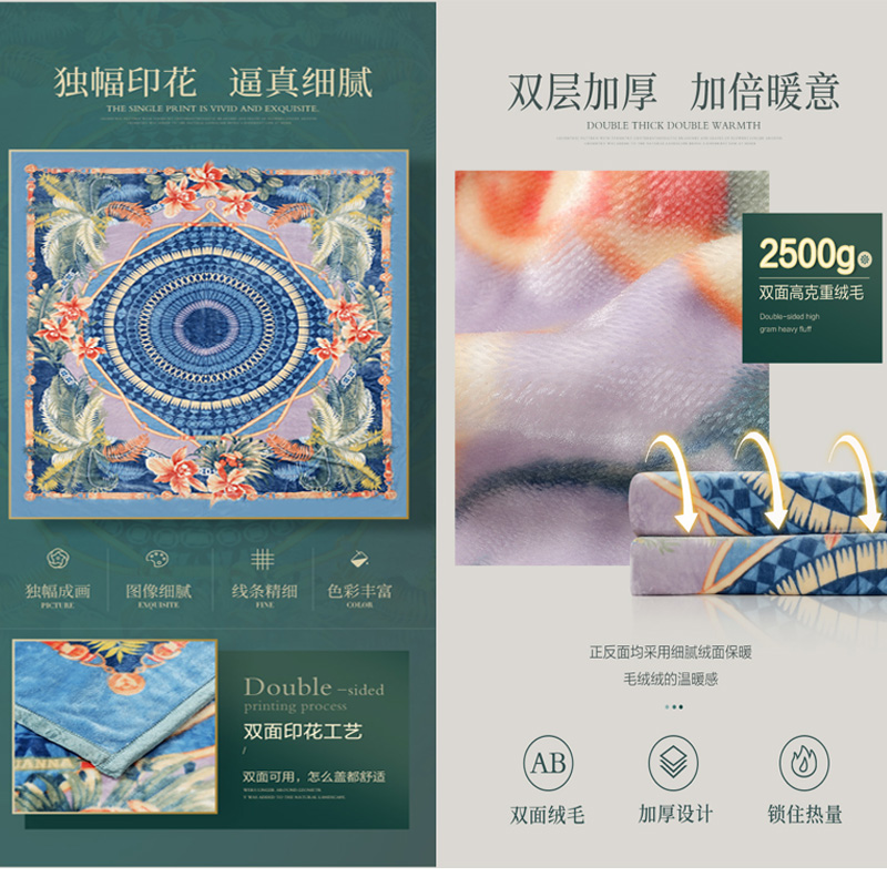 碧桐湾 双层云毯(毯子1件)【聚酯纤维/蓝】