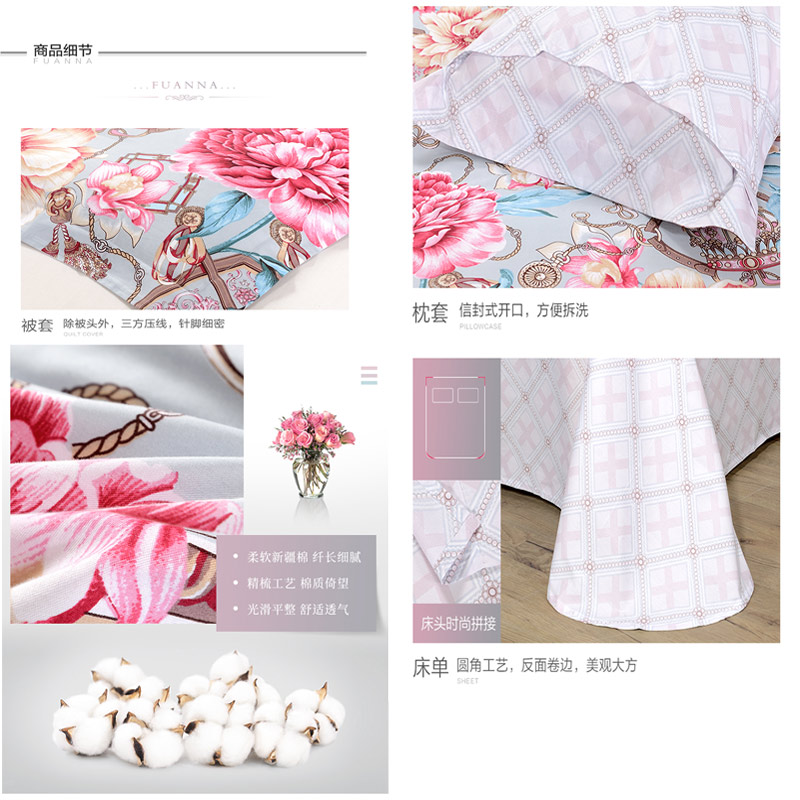 帕丁雅克 床单四件套(被套1件床单1件枕套2件)(适合1.5米床)【40支纯棉/花色】