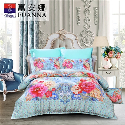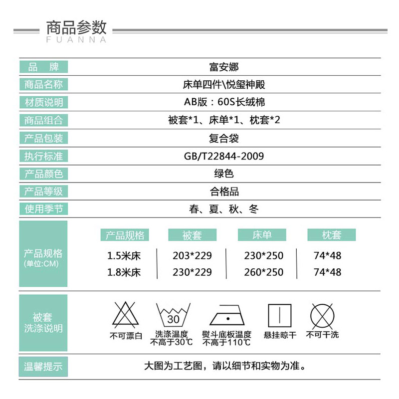 悦玺神殿 床单四件(被套1件床单1件枕套2件)(适合1.8米床)【60支长绒棉/绿】