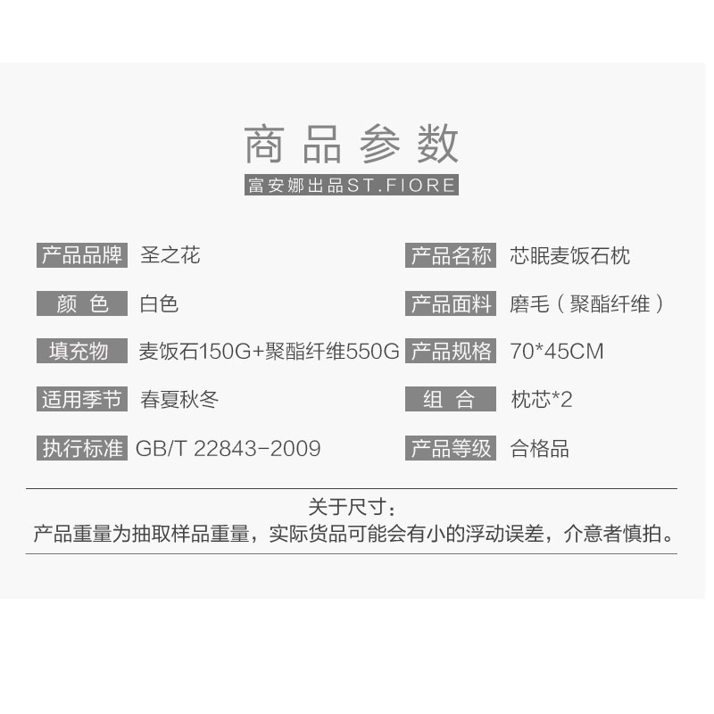 芯眠麦饭石枕(两只)【全涤磨毛布/白】