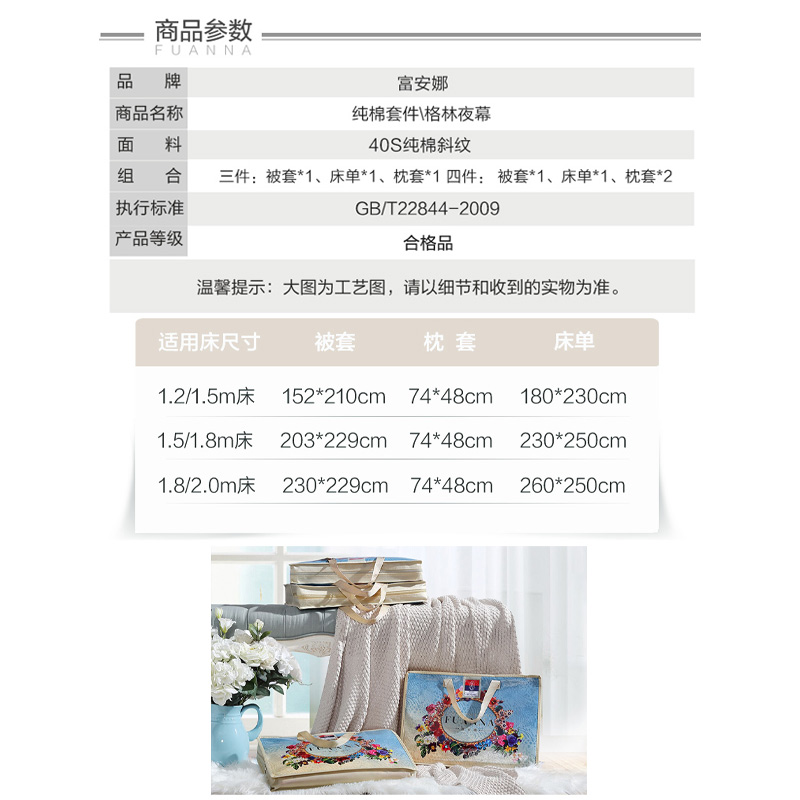 格林夜幕 床单三件套(被套1件床单1件枕套1件)(适合1.2米床)【纯棉/黄】