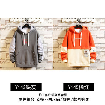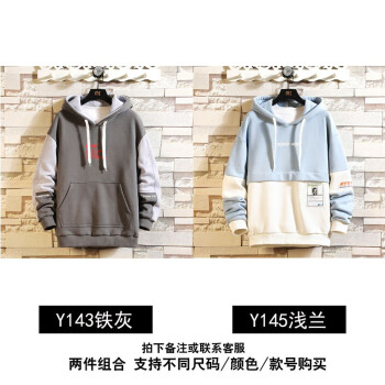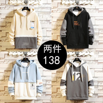 卫衣>>【两件装】慕林初客卫衣男春秋季韩版潮流休闲运动衣服青年学生带帽衫男士连帽上衣男装宽松秋装加绒加厚外套 Y136米色+Y149铁灰 XL