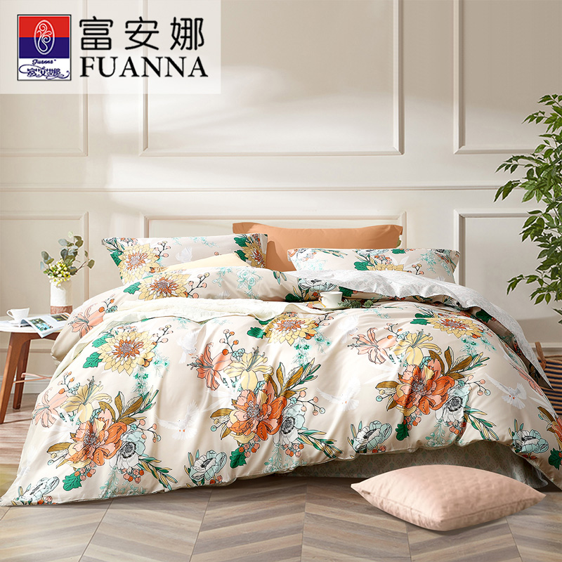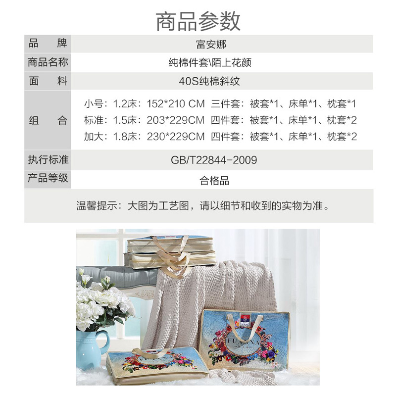 陌上花颜 床单三件套(被套1件床单1件枕套1件)(适合1.2米床)【纯棉/黄】