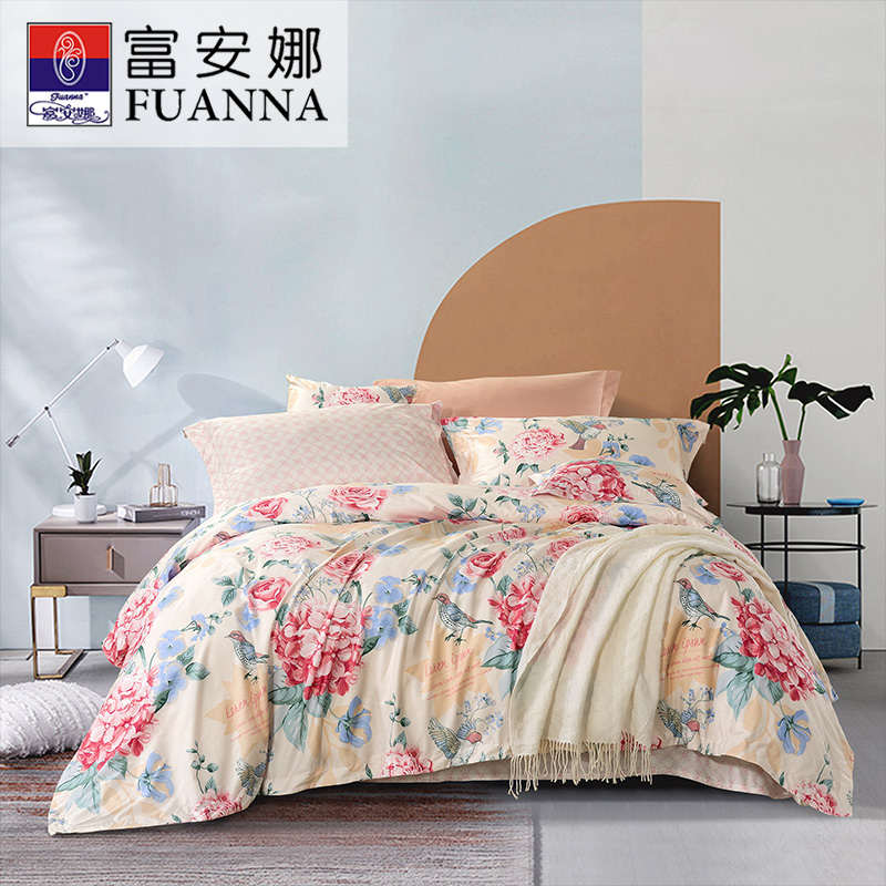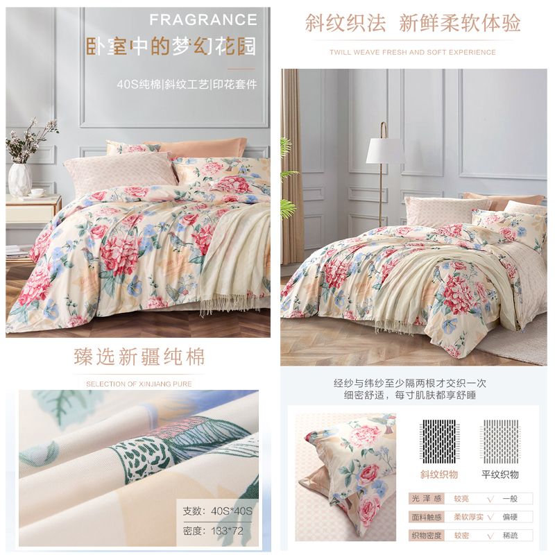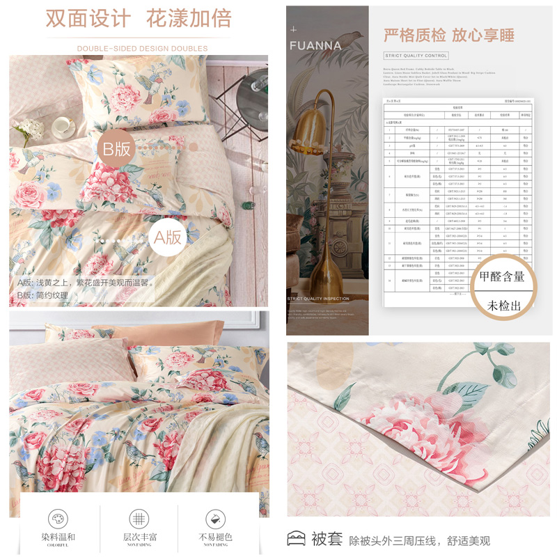 花影月熙 床单三件套(被套1件床单1件枕套1件)(适合1.2米床)【纯棉/黄】