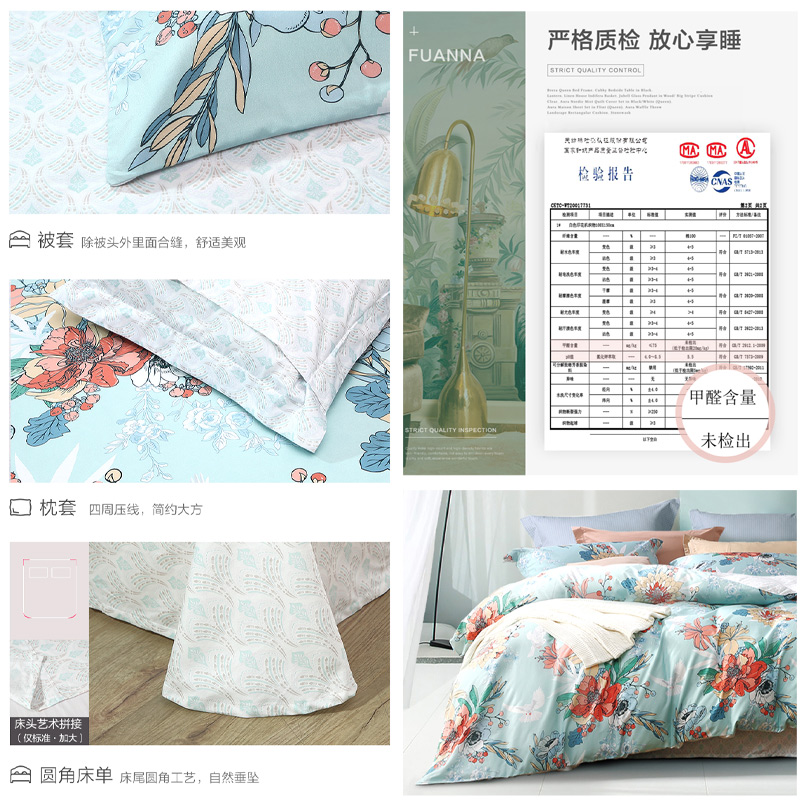 莱茵春色 床单四件套(被套1件床单1件枕套2件)(适合1.5米床)【纯棉/蓝】