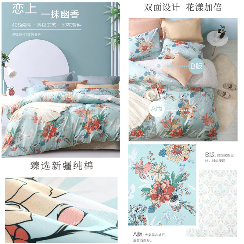 莱茵春色 床单三件套(被套1件床单1件枕套1件)(适合1.2米床)【纯棉/蓝】