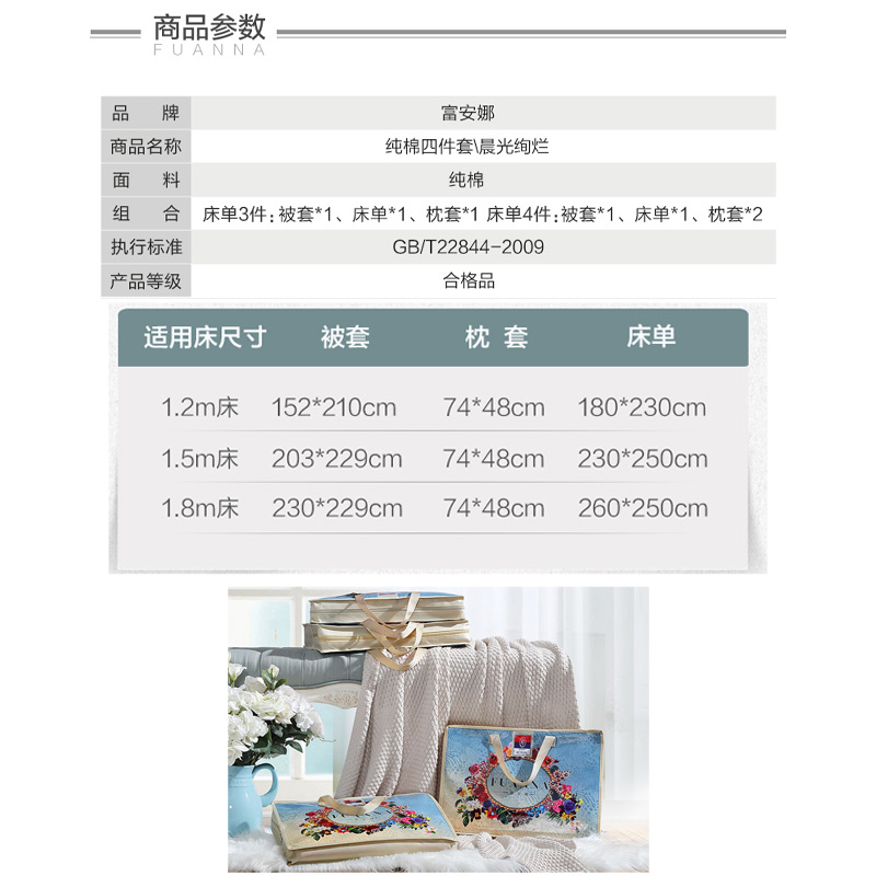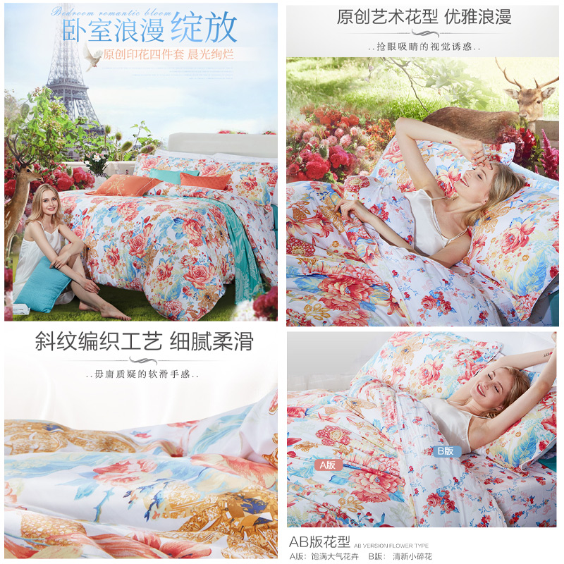 晨光绚烂 床单三件套(被套1件床单1件枕套1件)(适合1.2米床)【纯棉/蓝】