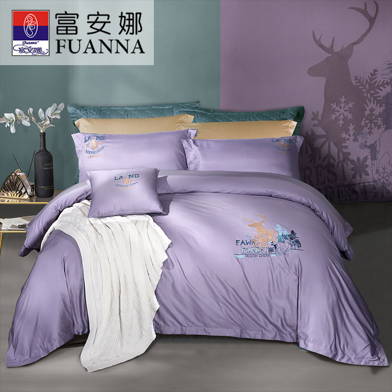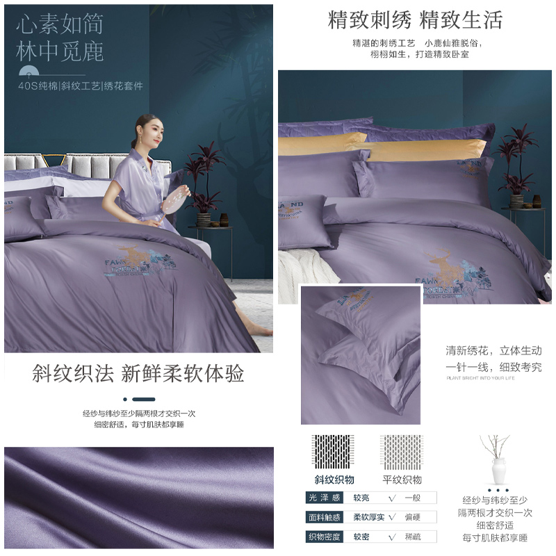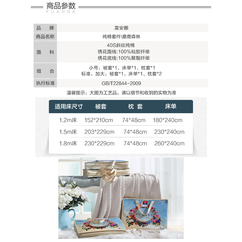麋鹿森林 床单三件套(被套1件床单1件枕套1件)(适合1.2米床)【纯棉/灰】